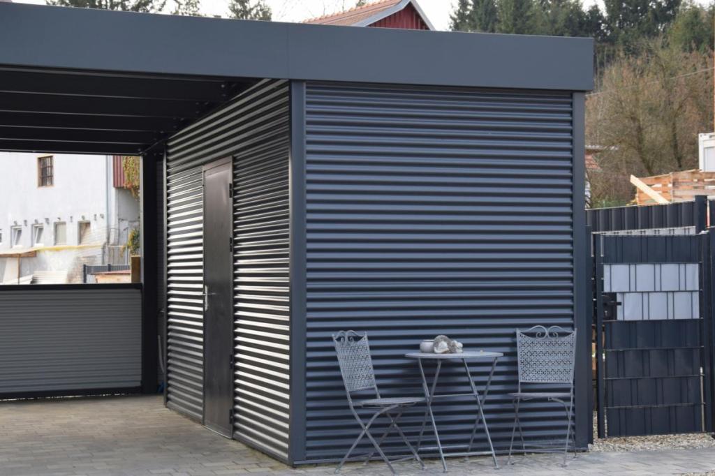 ABSTELLRAUM: Unser Carport bietet die Option, einen separaten Abstellraum zu integrieren oder frei zu positionieren – vor, hinter oder neben dem Carport. Dieser zusätzliche Raum bietet Platz für Werkzeuge, Spielzeug der Kinder, Fahrräder oder weitere Ausstattung für Ihr Auto.